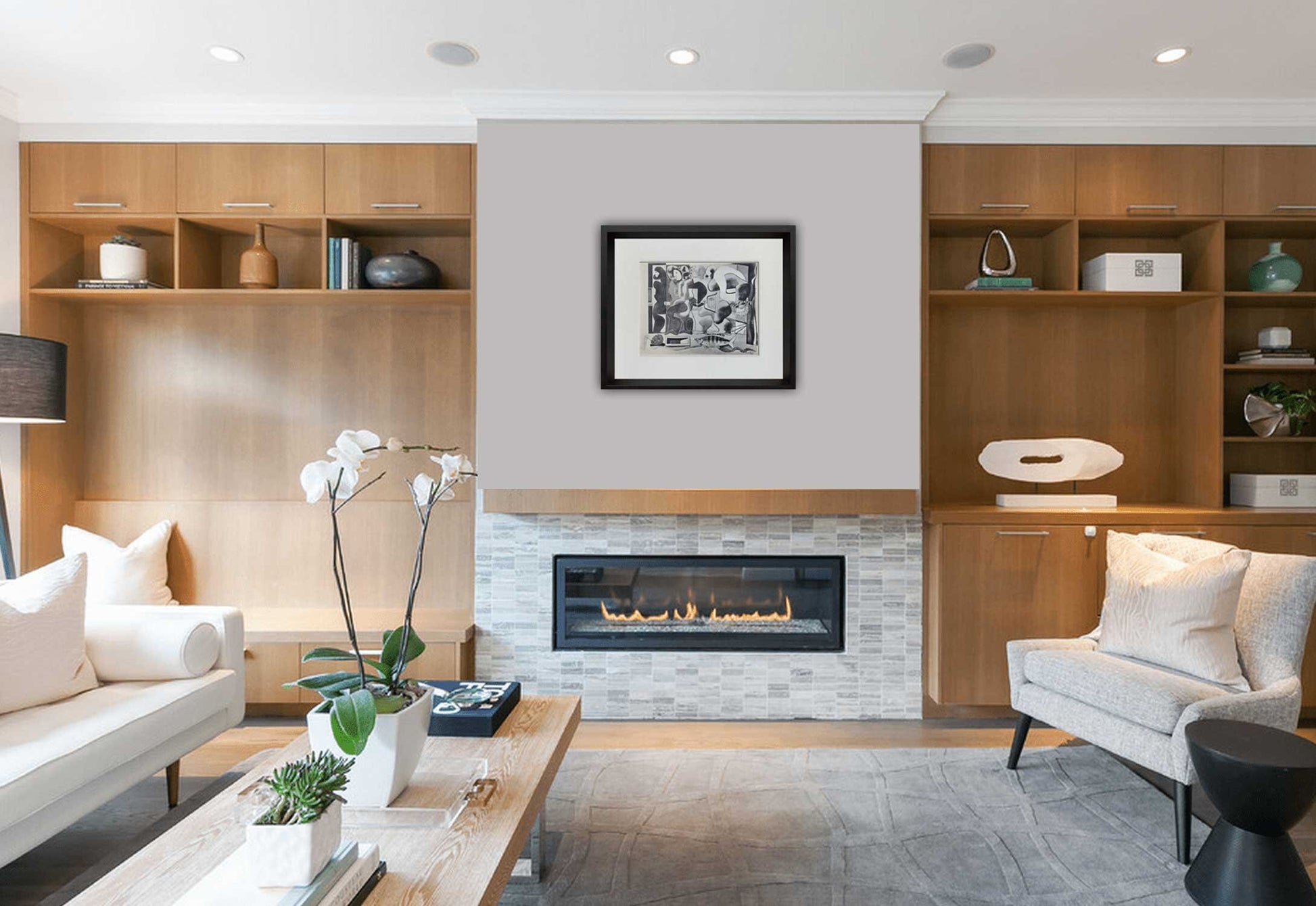 Professional custom cut and sized frame. Material used: Solid wood moulding, Crescent™ Acid Fee Museum Rag Mat™ + acid free backing and TruVu™ UV Protection Anti Glare Museum™ Glass. Modern Now's in-house framer constructs all of the archival framing to match the same specification of the artworks that are hung in the gallery for the preservation and protection of your artworks.
