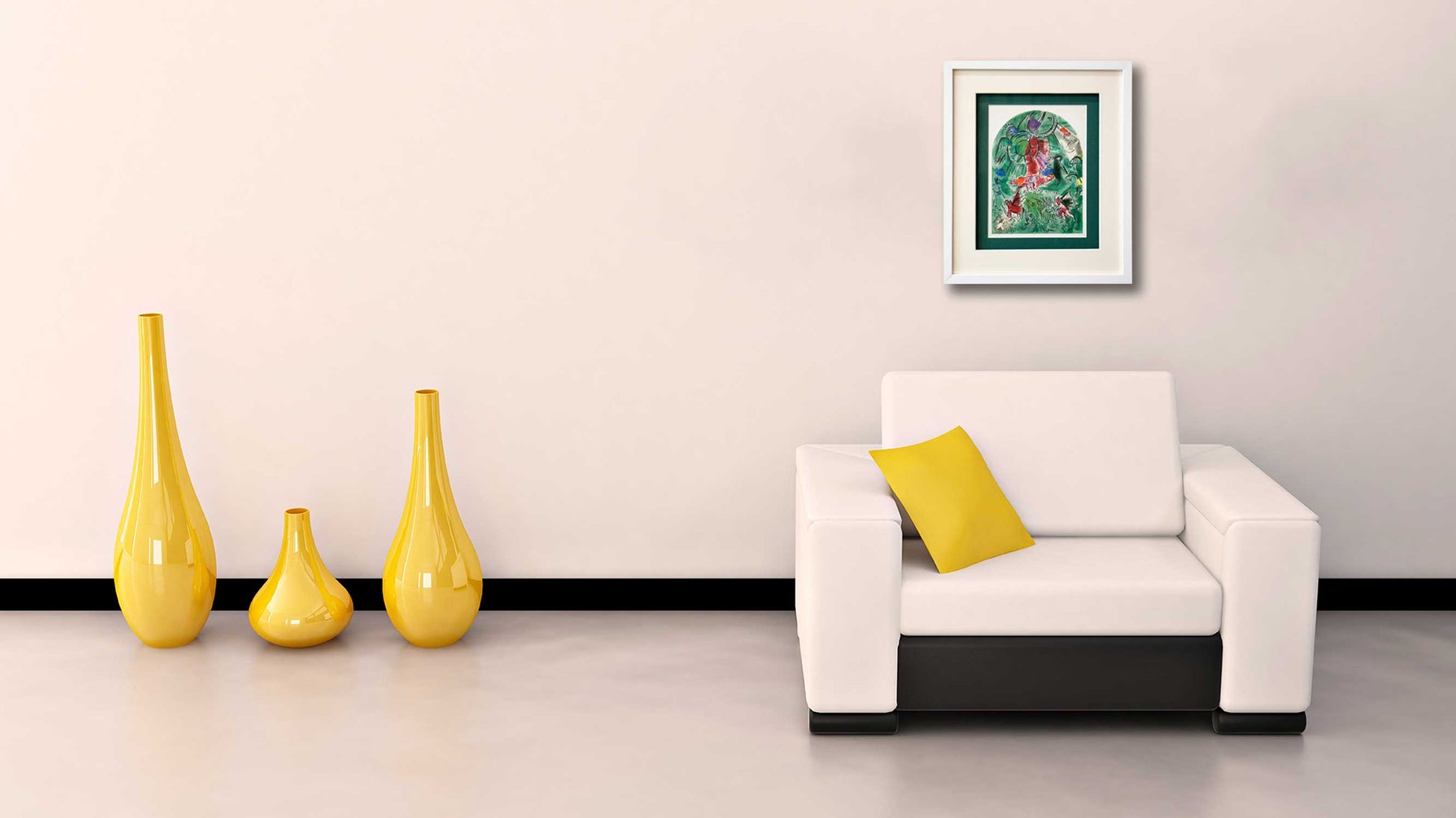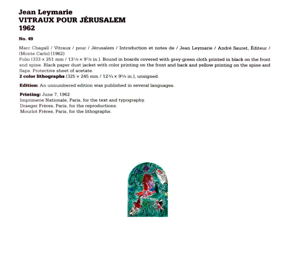 Limited Edition Marc Chagall Color lithograph, 1962. Titled: Gad. Size: 21,8x29,5cm. Frame Size: 18 1/2 x 21 1/2in. From the Presses of Mourlot Fréres, 1962 by Marc Chagall. From a Limited Edition Lithograph in color. This lithograph is Catalogue referenced by Cramer 49(see image authentication). This is an authenticated Chagall and is accompanied by separate color authentication paperwork including Gallery Certificate of Authenticity, Provenance and Catalogue References (c49) plus justification copy included.
